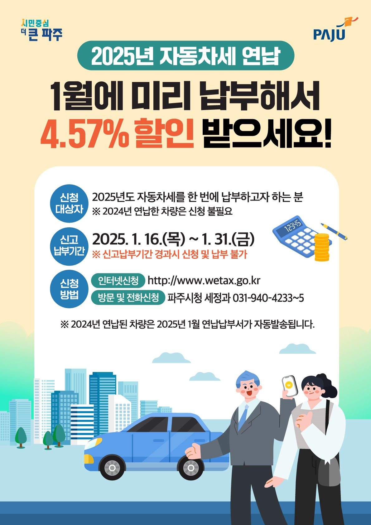 2025년 1월 자동차세 한 번에 선납하고 할인 받으세요